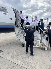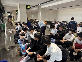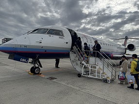 伊丹空港で昼食を食べた生徒達は,新潟に向けて飛行機に乗り込みました。