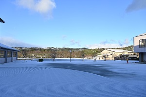明日から学校が再開します! 初雪が降り,学校のまわりにもうっすら雪が積もりました。そんな今日は学校閉鎖の最終日。明日から学校は予定通り再開します。皆さんが元気な姿で登校してくること,心待ちにしています!