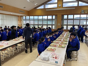 学校が再開しました。 今日から学校が再開し,校舎に活気が戻りました。給食も再開しました。まだインフルエンザが油断できないということで,今日の給食は黙食でいただきました。少しでも早く,友だちと会話をしながら給食を食べられる日常が戻ってくるといいですね。