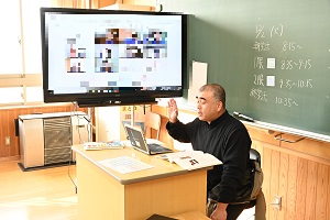 さて,今日は全クラスでオンライン授業を行いました。写真はH先生による2年生の国語の授業の様子。画面越しにみんなで平家物語の冒頭を音読していました。私たち教員も久しぶりのオンライン授業でした。工夫しながら授業が行いましたが,皆さんにはちょっと勝手が悪かったかもしれませんね。明日,明後日もオンライン授業が続きますので,みんなで頑張りましょう。
