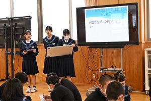 第4回学習クイズ大会 第4回学習クイズ大会が行われました。今回は朝学活前の10分間でクイズ大会が行われ,各学年が同時並行で問題に取り組みました。テストまであと3日となりましたが,このクイズ大会でこれまでの勉強の成果が確認できたでしょうか?