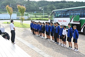 下越地区駅伝大会の結果 本日行われた下越地区駅伝大会に駅伝部が参加しました。結果は女子が3位,男子が5位。ともに県大会出場を決めました。さて,写真は昨日の朝の出発時の駅伝部員の姿。このときよりも何倍も自信に満ちた姿で明日学校に来てくれることでしょう!駅伝部の皆さん,おめでとうございます。