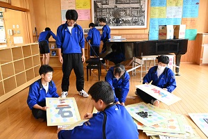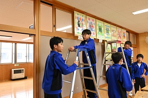 文化祭準備完了! 明日の文化祭に向けて,会場準備が行われました。生徒は協力したり,相談したりしながらとてもテキパキ動いていました。その結果,どの教室も個性あふれる作品展示会場に生まれ変わりました。 さて,明日は作品展示に伝統芸能発表,有志の出し物,合唱発表と,至る場面で南佐渡中生の努力の結晶が見られることと思います。ぜひ学校にお越しいただき,生徒の輝きをご覧ください!
