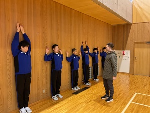 SEAが来校しました! 佐渡市SEAのC先生が来校し,野球部を指導してくださいました。C先生はブルペン練習でピッチャーの生徒にがアドバイスを送ったり,部員全員に投球に必要な筋肉を強化するトレーニングを伝授するなど,専門的な指導をしていただきました。野球部の皆さん,教えてもらったことを自分でどんどん試して,力をつけていきましょう!