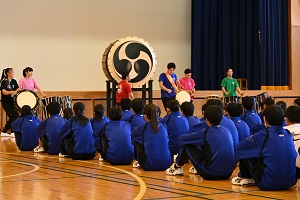 PTA研修部の皆様の企画で,鼓童研修生交流会が行われ,鼓童正メンバーを目指す研修生が太鼓の演奏を披露してくださいました。生徒達は迫力のある演奏に真剣に耳を傾けていました。また,交流会の途中では,研修生が何をきっかけに鼓童のメンバーを目指したのか,またどんな思いで日々活動しているか,紹介がありました。きっと生徒にとっても刺激になったことと思います。鼓童研修生の皆さん,ありがとうございました。