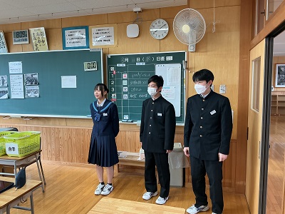 新生徒会本部役員による朝のあいさつ運動が始まりました。あいさつ運動は、教室に巡回してきた本部役員の号令に合わせてクラス全員があいさつをするというもの。卒業した3年生が始めたやり方ですが、新たに本部に加わったメンバーもいて、どこか新鮮な光景でした。1日の始まりが爽やかになるよう、本部のみなさん、よろしくお願いしますね。